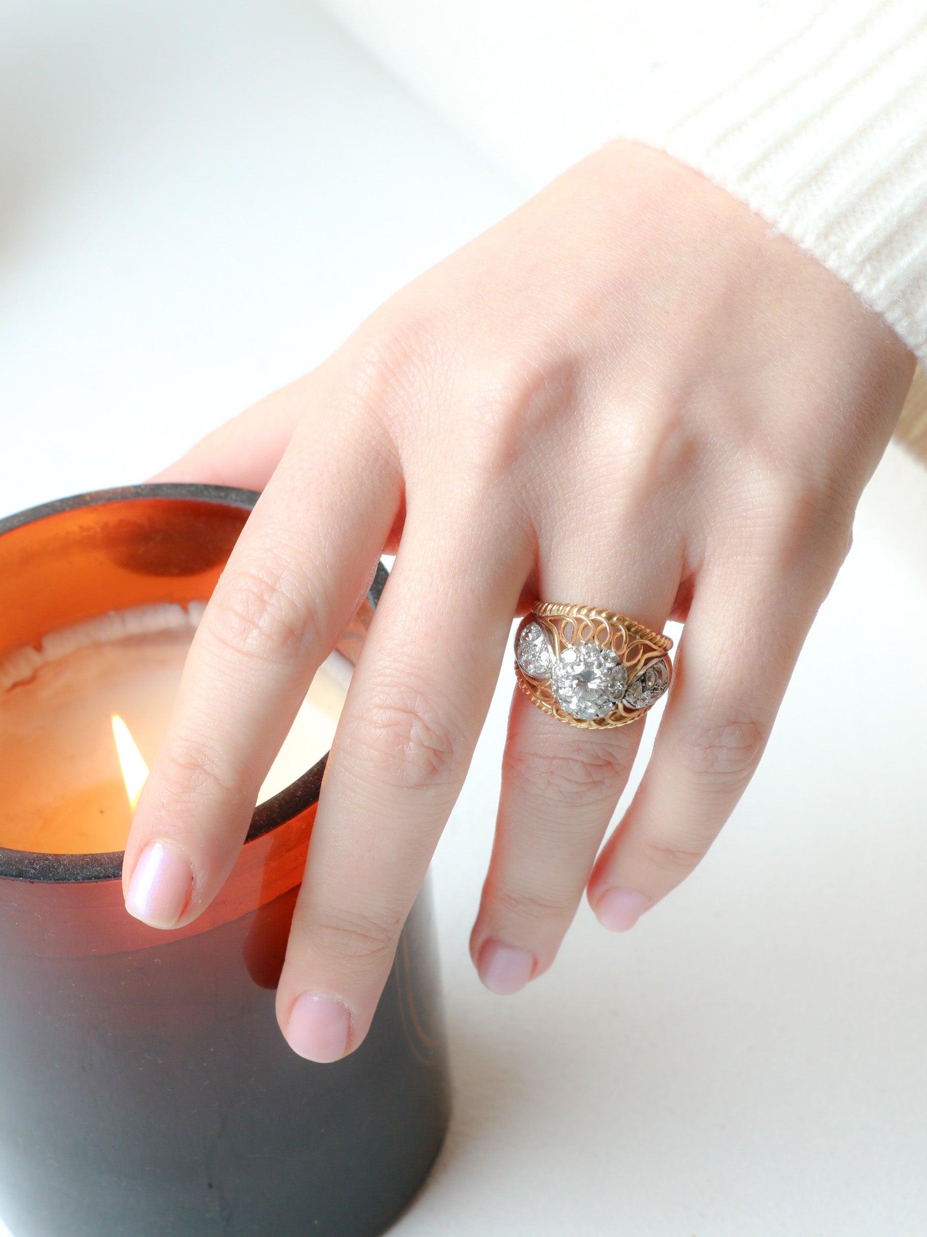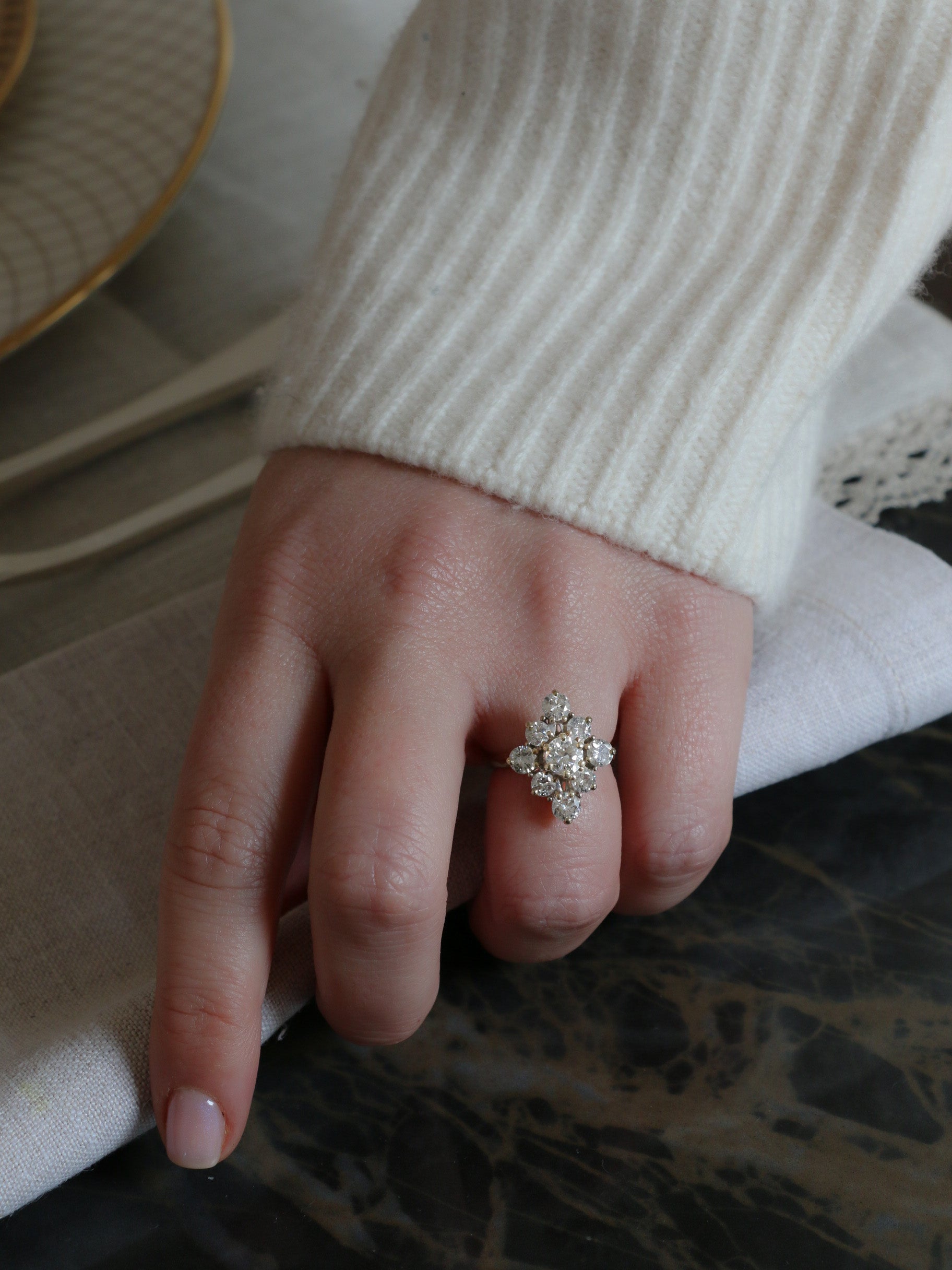 Bague marguerite or rose diamants taille rose 0.7 carat