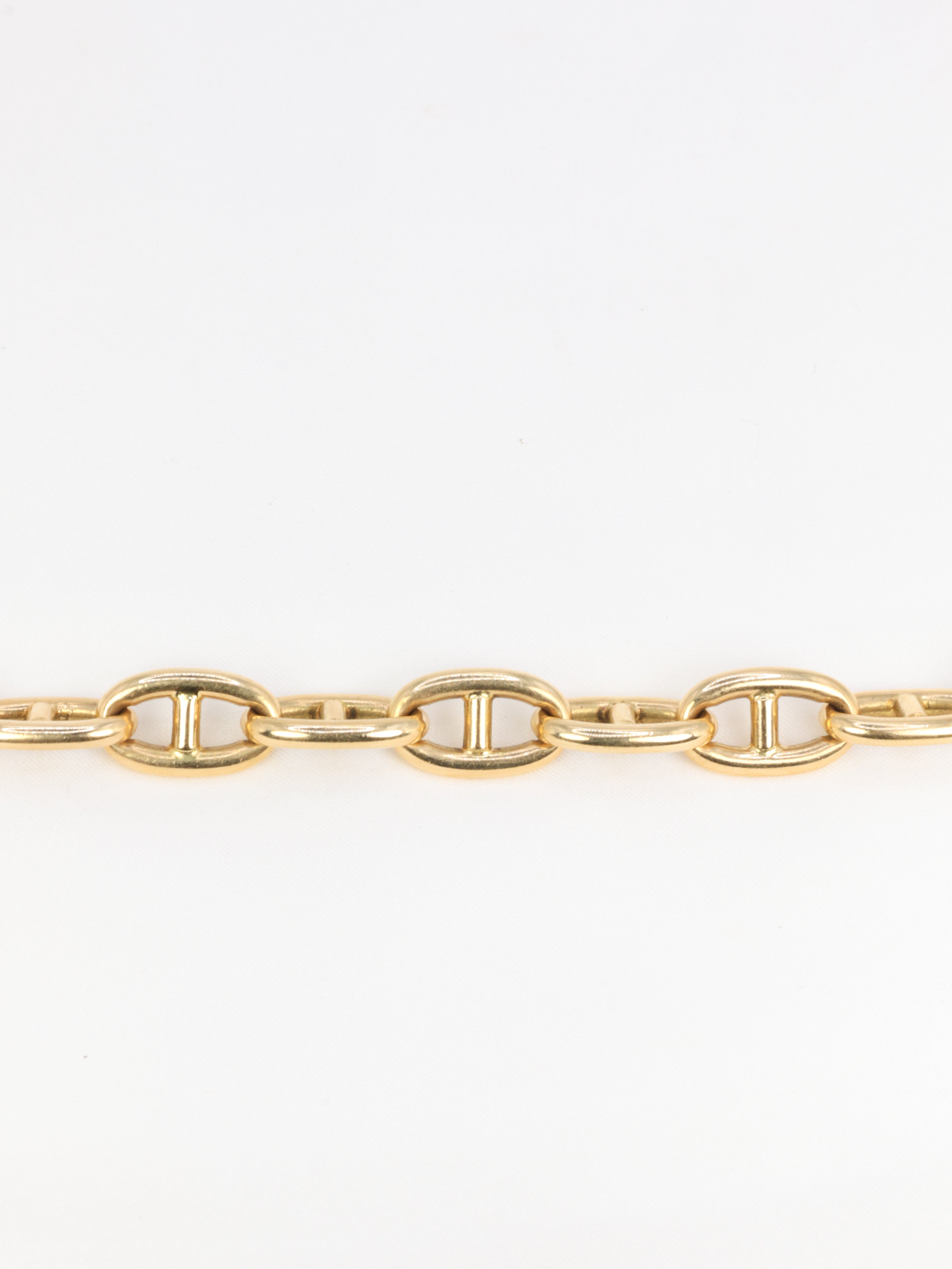 Bracelet en or jaune 18k (750°/°°) composé d’une maille chaîne d’ancre dans le goût des productions de la maison Hermès. Travail vintage français des années 1990. Présence d’un poinçon de fabricant.